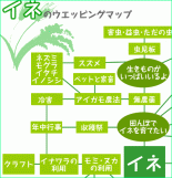イネをめぐるさまざまなテーマを「クモの巣」のように図式化した「ウェッビングマップ」は、調べたい項目をクリックするだけで、関連記事のリストが開きます。記事タイトルをクリックすれば閲覧ができます。