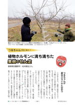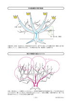 ●つるちゃんが道法スタイルと出合う●立ち枝からの発根ホルモンが起点●樹形は自由に、元気な枝を使う●慣行栽培はアクセルとブレーキの加減が難しい●外に伸びる枝を切って内向枝を残す!?●慣行栽培は中央集権型、道法スタイルは地方分権型●養分分配よりも植物ホルモンの総量増●粗せん定でのひとコマ●中せん定でのひとコマ