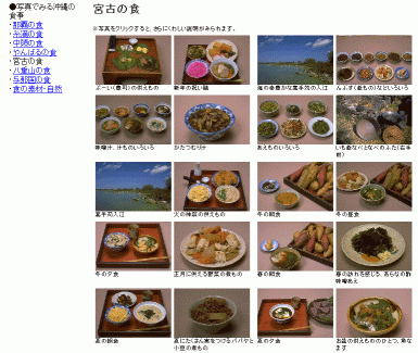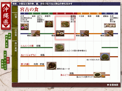 地域の食生活 その原点をさぐる沖縄県の宮古広域組合殿では、『日本の食生活全集・沖縄の食事』を元にして、沖縄の食文化の記録に、マウスクリックで簡単にアクセスできるようなページを作成しました。