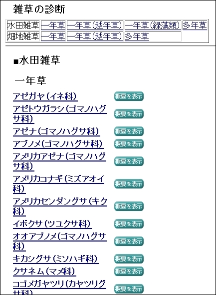 この電子図書館では,約160種の雑草について,写真を見ながら診断ができます。 もちろん防除方法も調べられます。