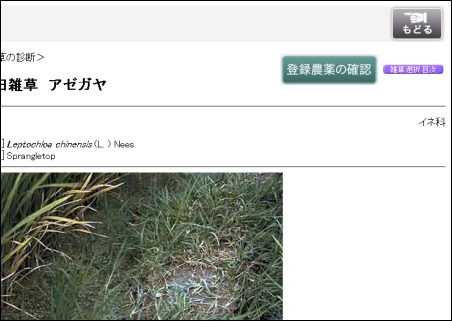 さらに,登録のある除草剤も調べられるようになりました。雑草名の一覧から調べたい雑草名を選ぶと,写真入りの詳細な解説記事のページが開きます。