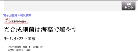 『現代農業』や『農業技術大系』をはじめ,収録されている記事の多くは,テキストデータとPDFデータの両方が収録されています。