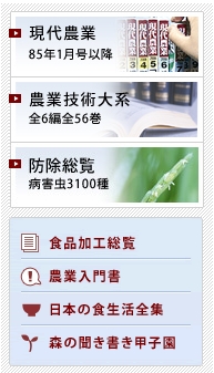 以前見た『現代農業』のあの記事をもう一度見たい。 『農業技術大系』で,関連する研究成果を探したい。 目的があらかじめはっきりしている時は,収録作品ごとの目次が便利です。