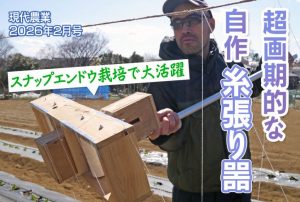 『現代農業』2月号取材ビデオを追加しました Tweet Pocket 下記の2本を追加しました。 ピーカンナッツの収穫と殻むき(3分7秒) スナップエンドウ栽培で大活躍 超画期的な自作糸張り器(8分23秒) 2025/12/25 関連