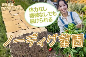 『現代農業』3月号取材ビデオを追加しました Tweet Pocket 下記の2本を追加しました。 体力なし・機械なしでも続けられる ノーディグ菜園(7分46秒) 株間・条間の除草にはチョッカラホウキング(2分13秒) 2026/2/3 関連