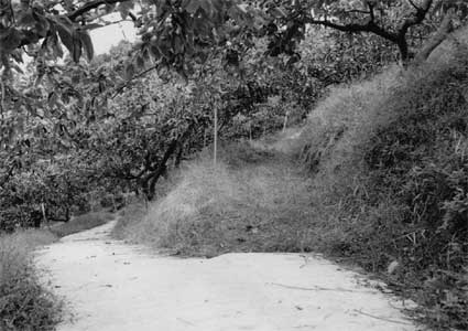 注目すべきは,立山さんの園地改造は,カンキツの高品質生産もねらっていること。作業道によって根域を制限したり,日光が直接地面や樹全体に当たるよう,作業道整備のし方が工夫されている。