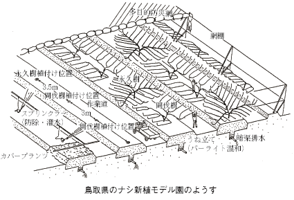 鳥取県を中心に青ナシ産地では,‘ゴールド二十世紀’など黒斑病抵抗性品種に転換中。赤ナシ産地でも,‘幸水’を中心に30年を超えて品質も収量も低下してきた古木の改植が進められている。ところが,各産地から「幼木を成園に仕立てられない」という声が届いてくる。