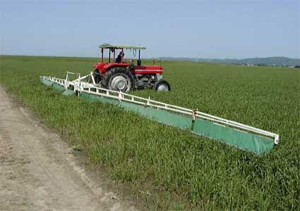 松浦さんのコムギ栽培の特徴は“麦なで”作業にある。豊かな地力を生かして超密植し,ふつうなら倒伏してしまう900本/m2の穂数を確保しながら,倒伏防止のために右ページ写真のような“麦なで”装置を工夫して接触刺激を繰り返す。