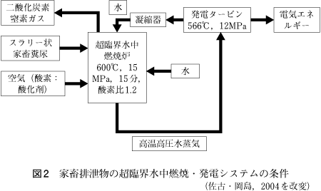 「超臨界水」とは耳慣れない言葉だが,水を臨界点以上の高温・高圧下におくことで,有機物溶解度が高く,しかも反応性の高い「超臨界水状態」をつくり出し,その中で水分が多く,しかも有機物含量が高い家畜糞尿を短時間に,しかも完全に分解しようとする技術である。その結果,残渣は何も残らない。