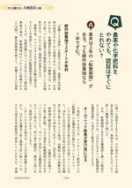●JAS認証を取得するのって、お金がけっこうかかるんでしょ?◎相場は10万~15万円。認証機関によってピンキリです。○安い認証機関なら7万円くらい○自治体の認証は激安○費用の補助もある●有機食品の加工や飲食店にも挑戦したい!◎加工には加工の、料理には料理の認証が別に必要です。●農薬や化学肥料をやめても、認証はすぐにとれない?◎基本は2年の「転換期間」がある。でも耕作放棄地なら1年ですむ。○耕作放棄地でスタートが有利○オーガニック給食が受け皿になる●有機JASは農薬や化学肥料以外にも、使えない資材があるんでしょ?◎そう、生分解性マルチやチェーンポットも使えません。○分解されて土に還るのに……○有機JASで使える「シーダーテープ」○農家の声を募集しているメーカーも●タネも有機じゃなきゃダメ?◎どうしても入手できない場合は、市販のタネも使えます。○例外の例外の例外だけど使える○無農薬のタネ販売も増えてきた●ゲノム編集はどう考えるのか。◎有機JASでは禁止しました。ただ今は、いったん保留することになったみたい。○ゲノム編集で新たな品種が続々○有機JASでの使用は禁止→保留へ
