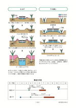 ●根を切ると軟腐病の感染口になる●ウネ崩し◎爪軸の長さを替えて3回で●土上げ(1) 太さ確保◎小山を作って根を逃す●土上げ(2) 軟白化◎雨前がベスト●根量が増え、葉が厚く太くなった●爪の向きで根傷みを防ぐ