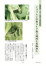 ●農薬メーカーから脱サラ●虫の出方が変わってきた●観察で発生パターンを把握●8年前の100倍に激増●成虫が越冬、卵も冬眠せず●予察的防除のやり方◎(1)9月20日前後から注意◎(2)早朝、有翅体を探す◎(3)日の当たらない所が好き◎(4)雨が繁殖のスイッチ●自作防除液とガムテープ●防虫ネットなしも可能に