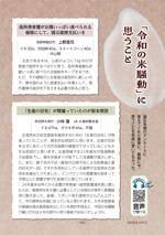 ●低所得者層がお腹いっぱい食べられる価格にして、国は直接支払いを●「生産の目安」が間違っていたのが根本原因●「高いなら輸入すればよい」は、「亡国論」●小規模農家の生きがいやプライドを無視した農政の「つけ」●米農家が減ると、地域の景観や文化、産業も維持できなくなる●保有米・縁故米、直売の量は10年前の2倍に●山間地の農業は兼業による地域維持、国土保全農業