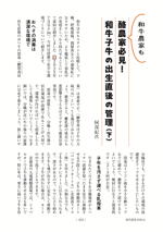 ●おへその消毒は清潔な環境で●子牛を汚さず運べる乳母車●前膝の保護が大事●ラバーマットで膝を守る●関節炎●滑液嚢炎
