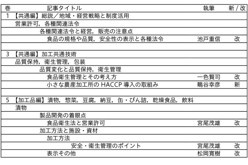 改正が続く食品表示法の最新情報、食中毒や食物アレルギーの最新発生状況と対策、届出制から営業許可制に変わった漬物の衛生管理と食品表示を収録しました。