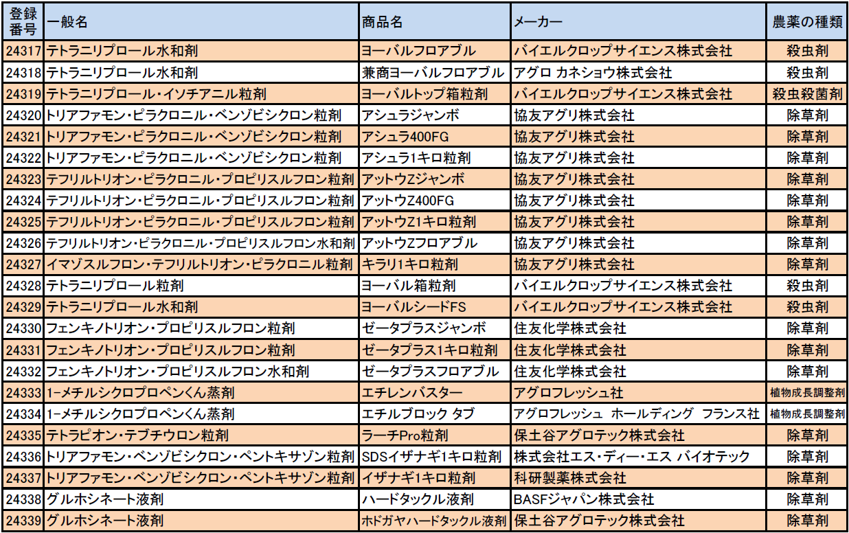 「登録農薬検索」情報を更新しました(2020/2/12付まで) Tweet Pocket 2020年2月12日登録分を反映して情報を更新しました。 今回は、下記の新農薬が加わった他、適用情報の更新がされています。 2020/2/21 関連
