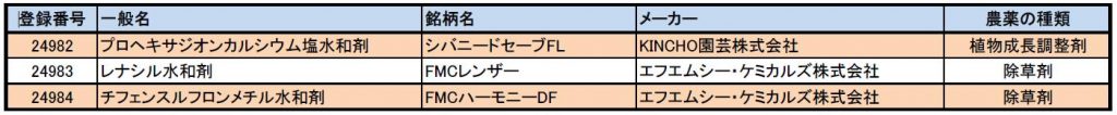 08/27付までの農薬情報を更新しました。