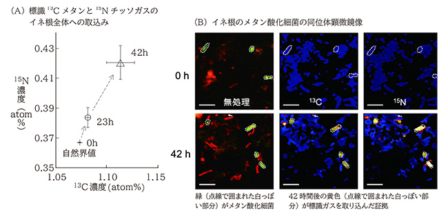 図3 低チッソ水田の水稲根でメタン酸化菌がチッソ固定している証拠