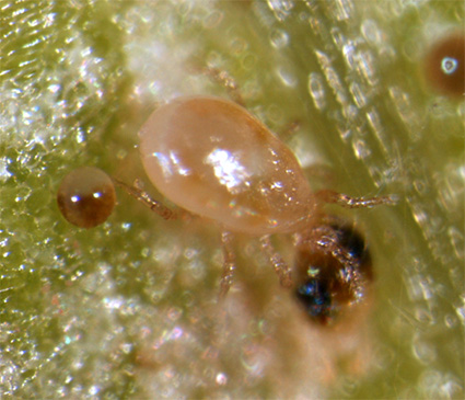 写真1 ハダニを捕食するミヤコカブリダニ