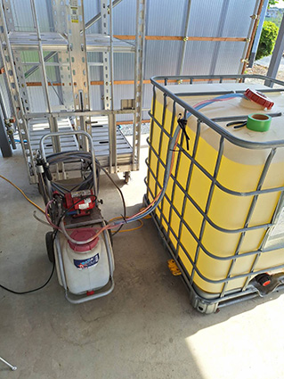 写真4 土壌還元消毒の際にエタノールを注入する動噴