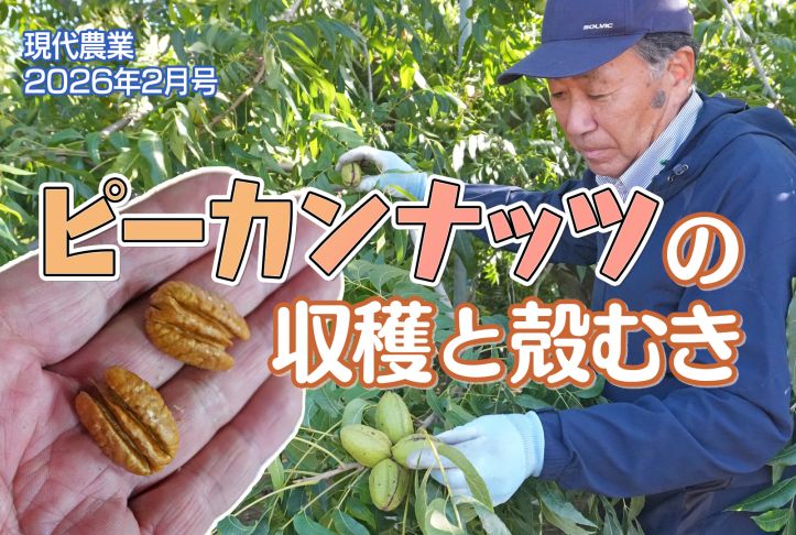 埼玉県のナシ農家・尾野敬一さんは、ピーカンナッツ(ペカン)を13品種も栽培しています。あまり手間がかからず、元気に育つそうです。今回は、その収穫と殻むき作業を見せてもらいました。