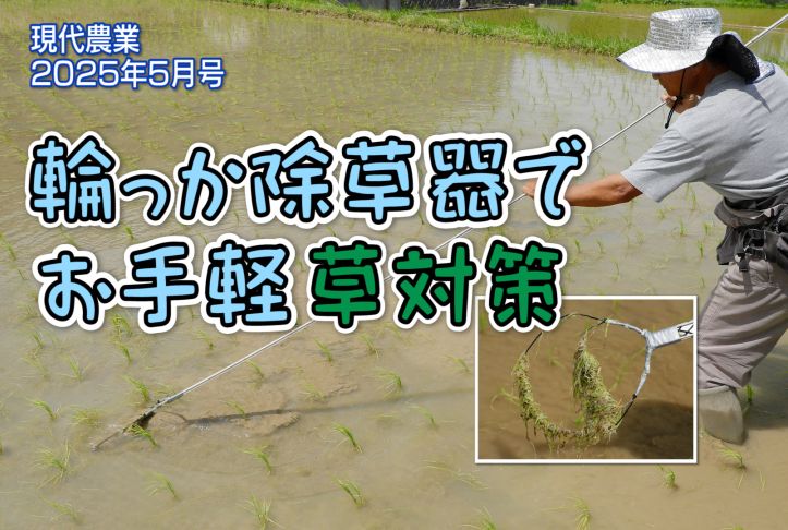 愛媛県の農家・二神敏郎さんが自作した「輪っか除草器」を見せてもらいました。これでイネの条間も株間もラクラク除草!