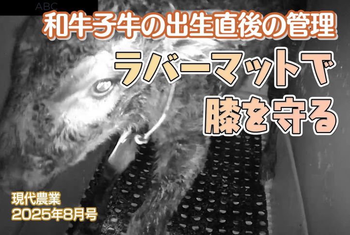和牛子牛の出生直後の管理 ラバーマットで膝を守る