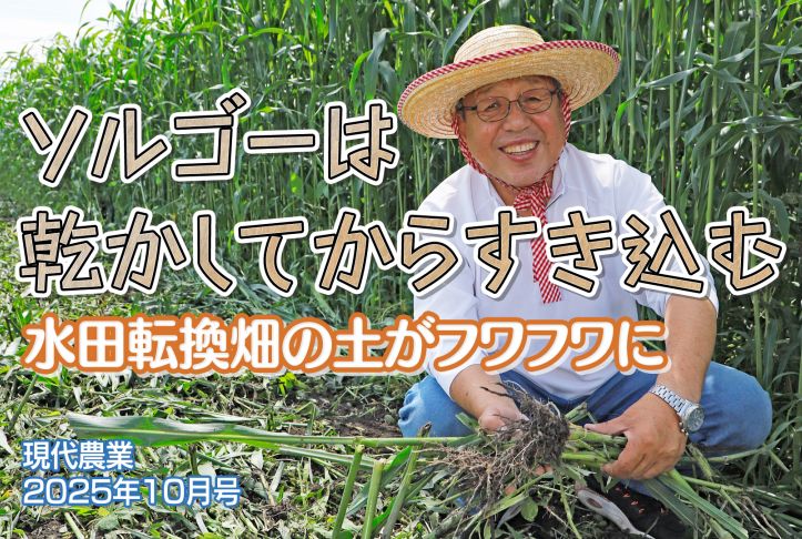 水田転換畑の土がフワフワに ソルゴーは乾かしてからすき込む